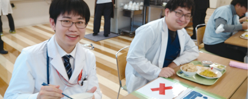 職員食堂で昼食をとります。栄養バランスがとれていて美味しく、リーズナブルなので毎日楽しみにしています。