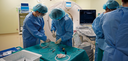 指導医の助手として穿刺やカテーテル操作を行います。