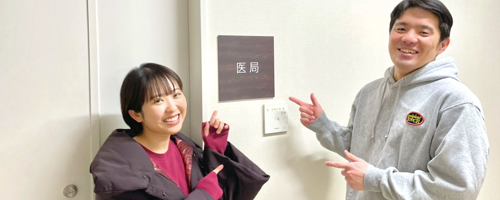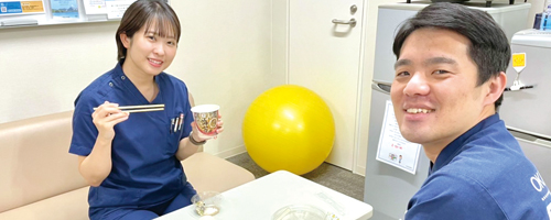 今日は研修医室で、2人でお昼ご飯を食べます。病院内にコンビニ