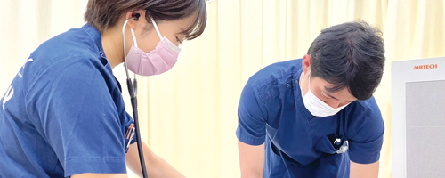 ICU、HCU、救急病棟の患者さんの状態チェックと回診のプレゼンを行います。